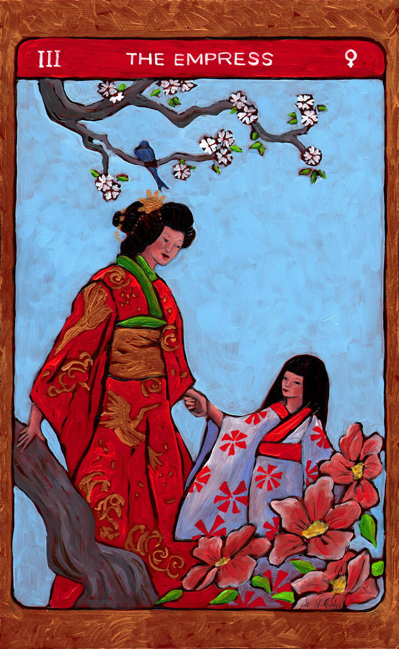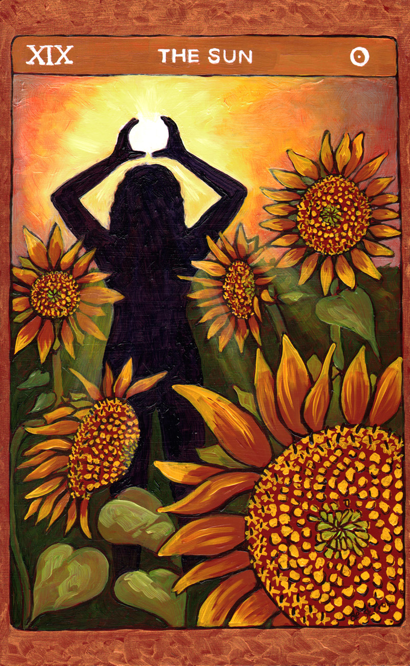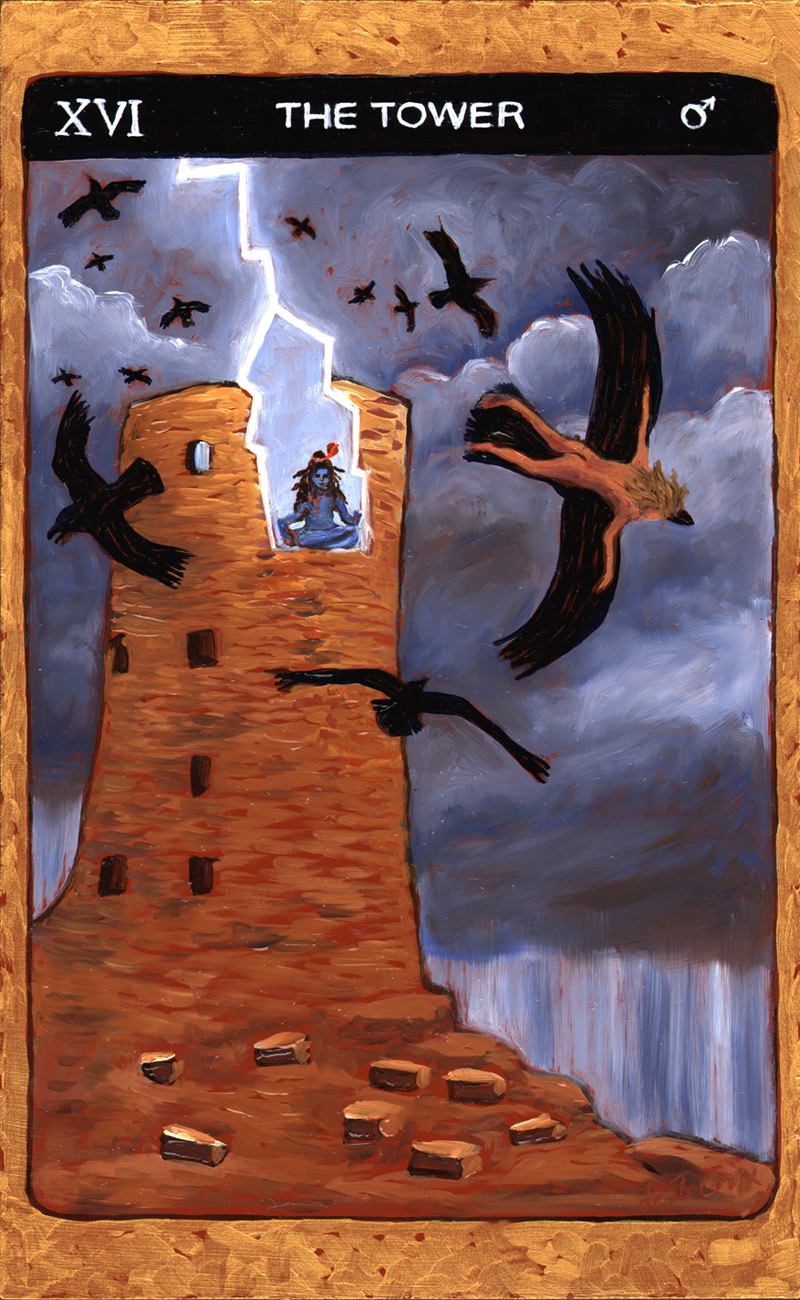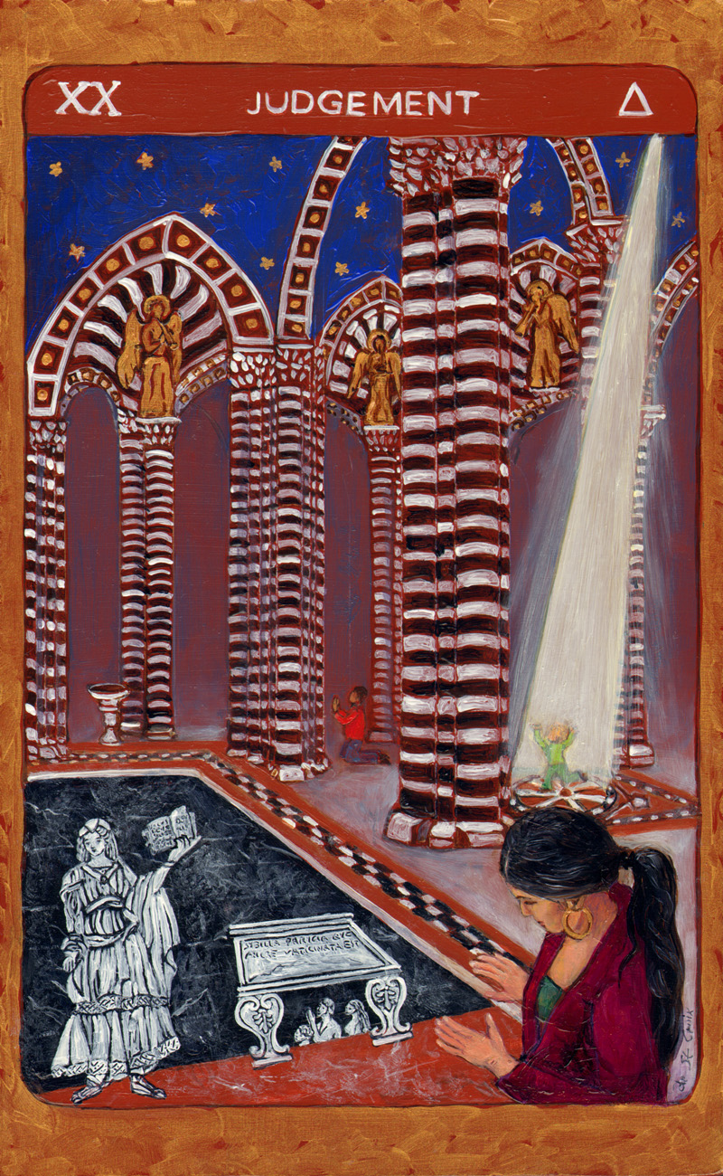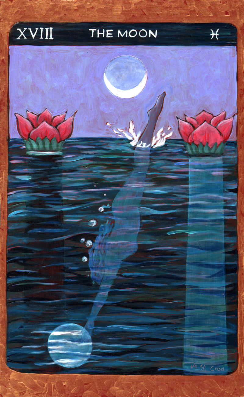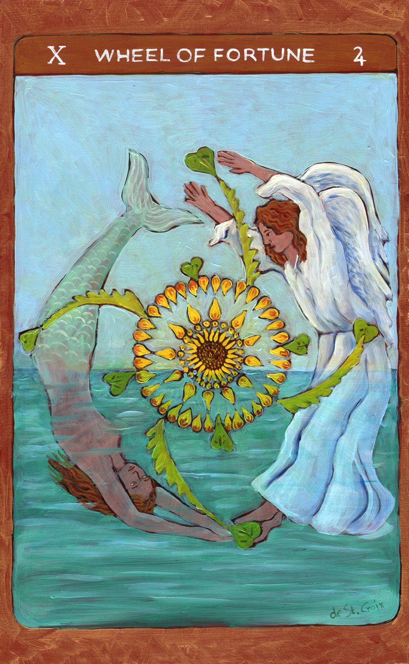 These oil paintings explore the timeless archetypes of Tarot. Twenty-two paintings 13” x 8” from the Major Arcana in Tarot de St. Croix shows the journey of the soul beginning with The Fool and culminating with The World drawn from many cultures. Another Hermit and Star continue the story of the archetypes in a larger format.