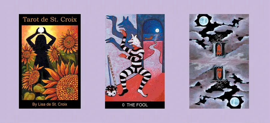 “Tarot de. St. Croix is one of those rich, beautiful decks worth acquiring for your collection. The emotions that each work of art portrays, the layers of tarot symbolism, both the resonant connection to the divine and the connection to the mundane that merge seamlessly throughout the deck art narrative are just a few of the reasons the Tarot de St. Croix has remained so sought after and beloved over the last decade.” Benebell Wen